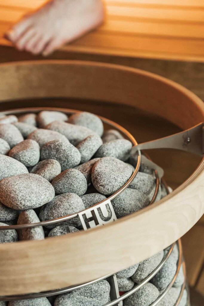 Installé dans un environnement naturel, le sauna invite à profiter pleinement du moment, entre air marin et horizon ouvert.